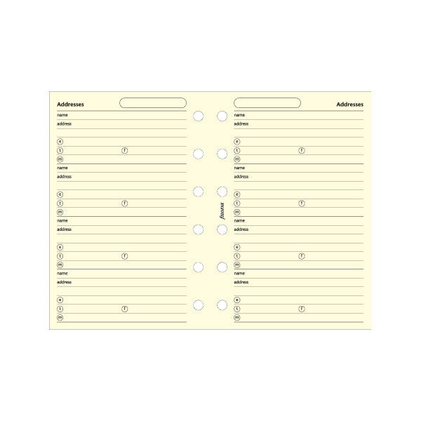Filofax Pocket Address-sider er den ideelle måde at organisere dine kontakter på. Disse sider i Pocket format (12x8cm) er designet til at passe perfekt ind i din Filofax Pocket kalenderomslag og giver dig mulighed for nemt at opbevare og opdatere dine vigtige kontaktoplysninger. Med plads til navne, adresser, telefonnumre og e-mails sikrer disse sider, at du altid har dine kontakter lige ved hånden og organiseret på en praktisk måde