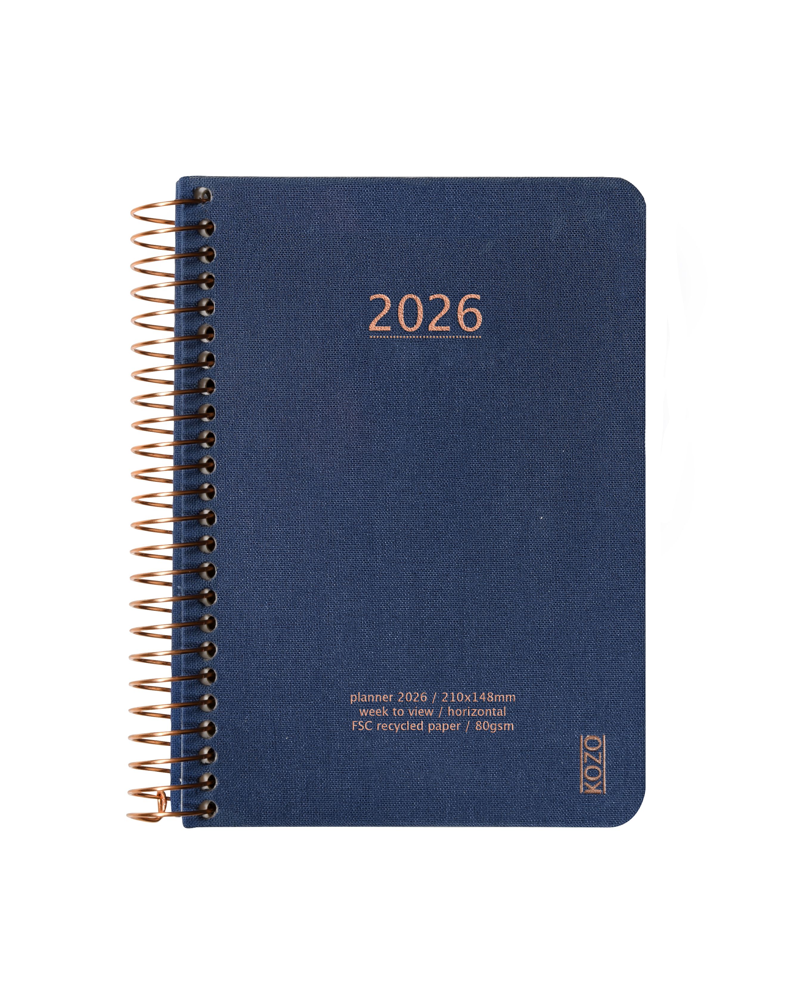 KOZO Spiralkalender 2026 er en stilren og funktionel årskalender designet i et klassisk nordisk udtryk. Med sin A6-størrelse og spiralindbinding i hardcover kombinerer den både æstetik og funktionalitet. Den praktiske spiralryg gør det nemt at bladre mellem ugerne, mens layoutet med uge pr opslag, mandag til torsdag på den ene side og fredag til søndag på den modsatte side med plads til ugens notater i bunden giver et klart overblik over dagene. Farven Navy Blue tilfører et diskret og moderne udtryk, som passer perfekt på skrivebordet, i tasken eller på kontoret. Kalenderen dækker 12 måneder januar til december og indeholder praktiske oversigter, årsplan og plads til noter – ideel til både planlægning, refleksion og struktur i hverdagen. En KOZO Spiralkalender 2026 er et oplagt valg for dig, der sætter pris på kvalitet, funktionalitet og et roligt designunivers inspireret af skandinavisk enkelhed. KOZO Spiralkalender 2026 er den perfekte årskalender for dig, der ønsker overblik og ro i hverdagen.