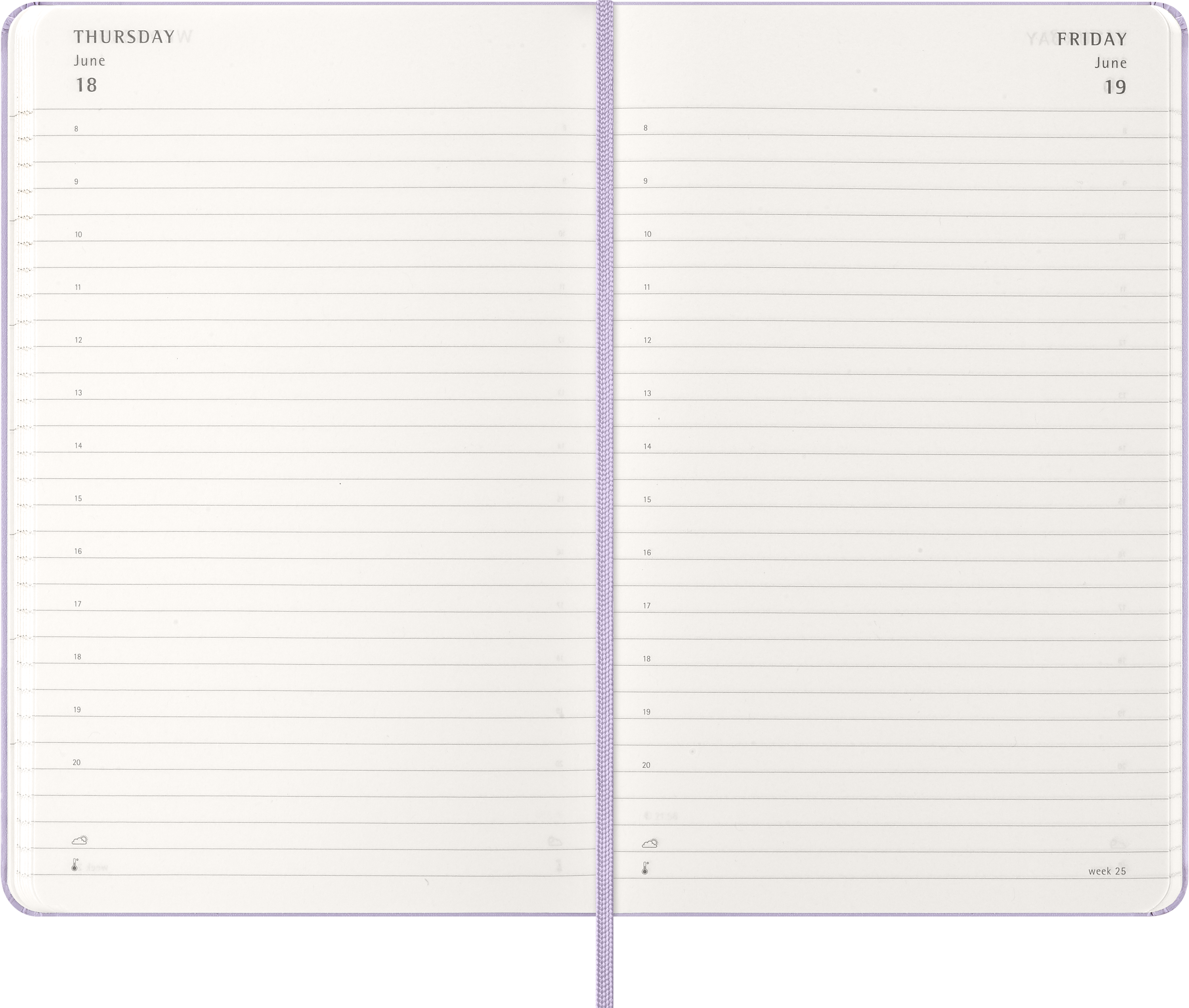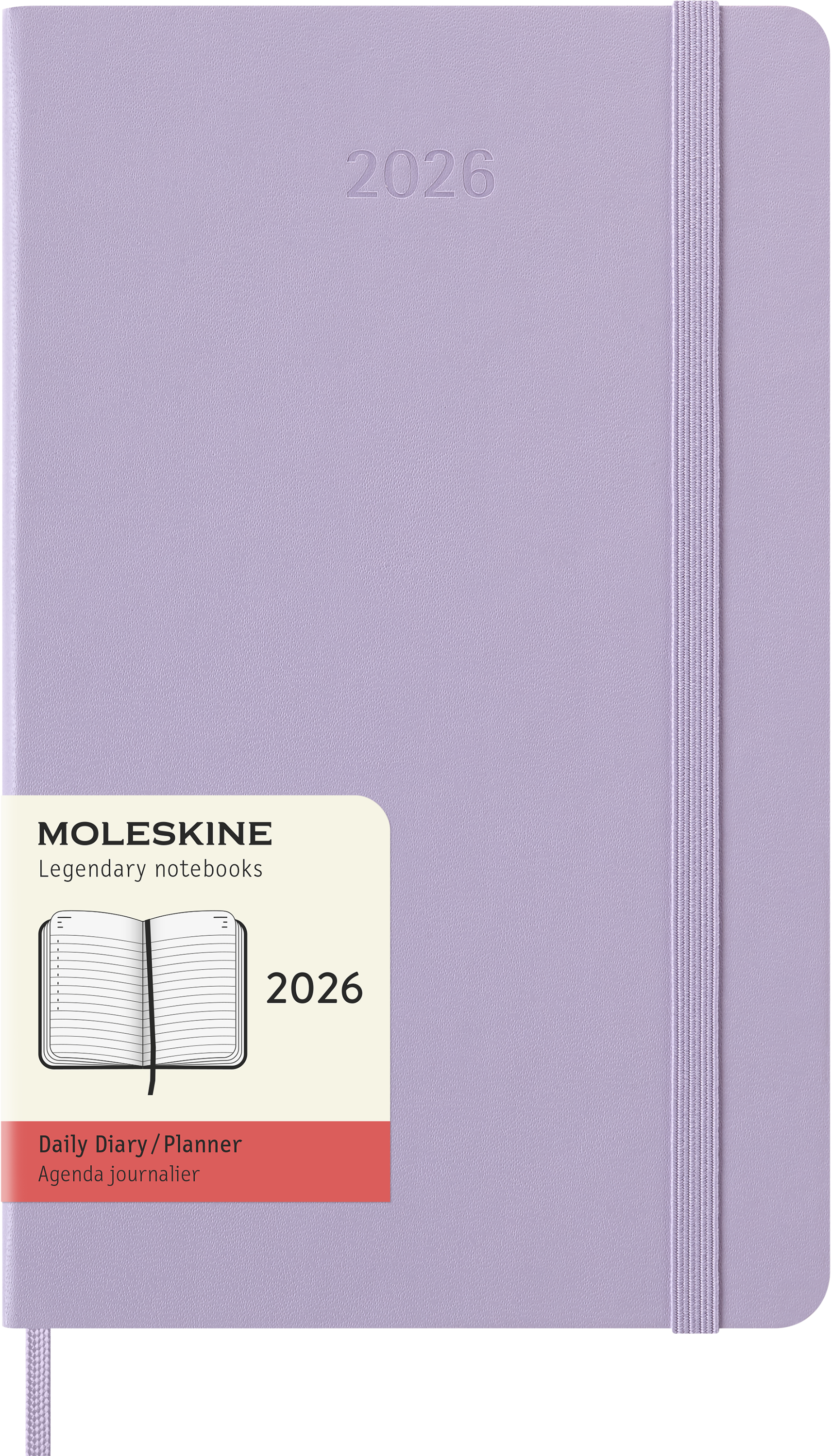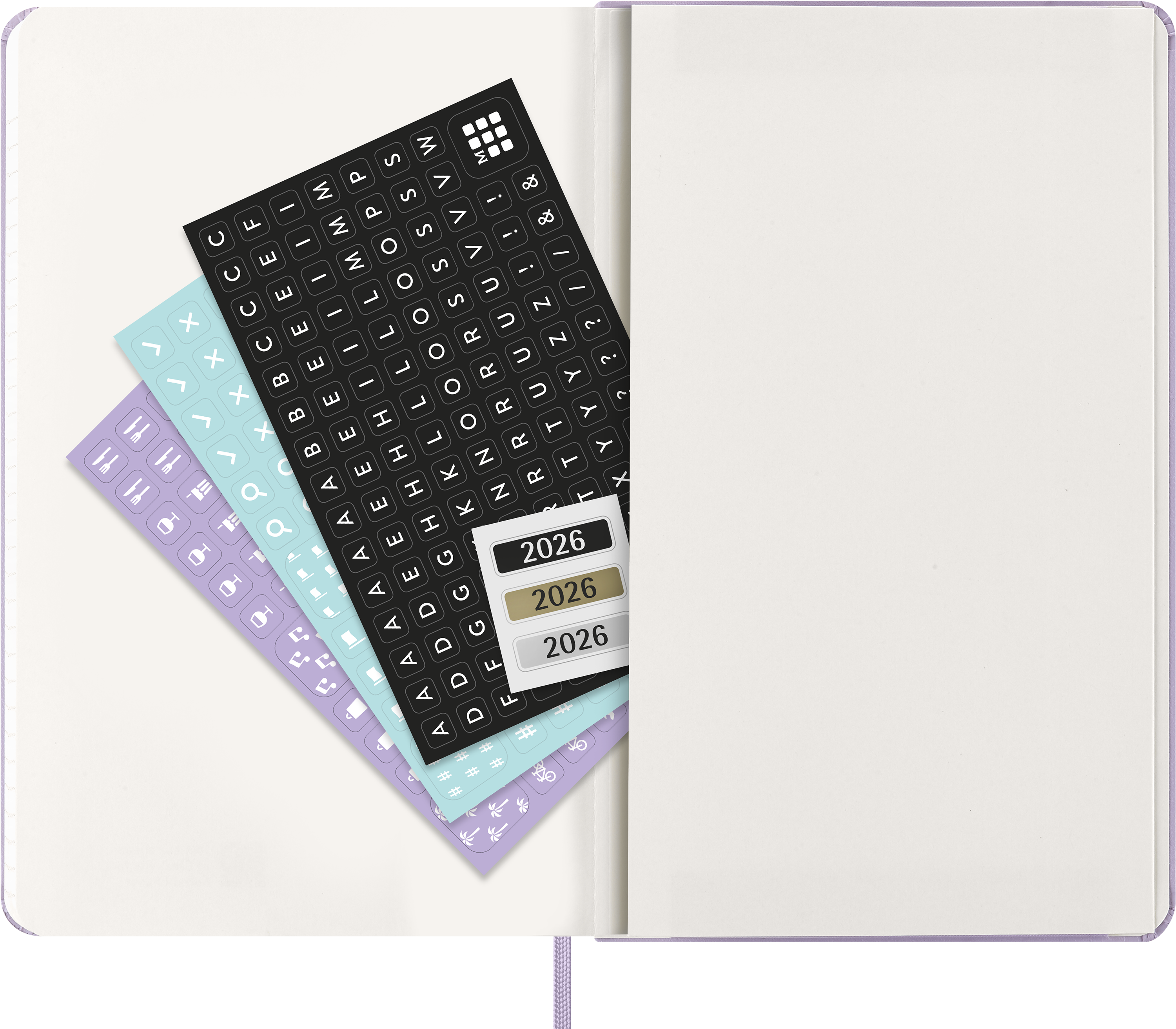 Moleskine 2026 dag pr opslag kalender i Large (A5+) størrelse med hardcover i Lilac Pastel. Kalenderen dækker 12 måneder Januar til December, og giver dig et struktureret overblik over hele året. Designet med Moleskines klassiske detaljer som elastiklukning, runde hjørner, matchende bogmærkebånd, inderlomme til løse notater, stickers samt 70g elfenbensfarvet syrefrit papir, årsoversigt, månedsoversigt, hvilket gør den både praktisk og stilfuld. Perfekt til dig, der ønsker at holde styr på aftaler, deadlines og daglige noter med et professionelt og tidløst udtryk. En ideel kalender til både arbejde, studie og privat brug.