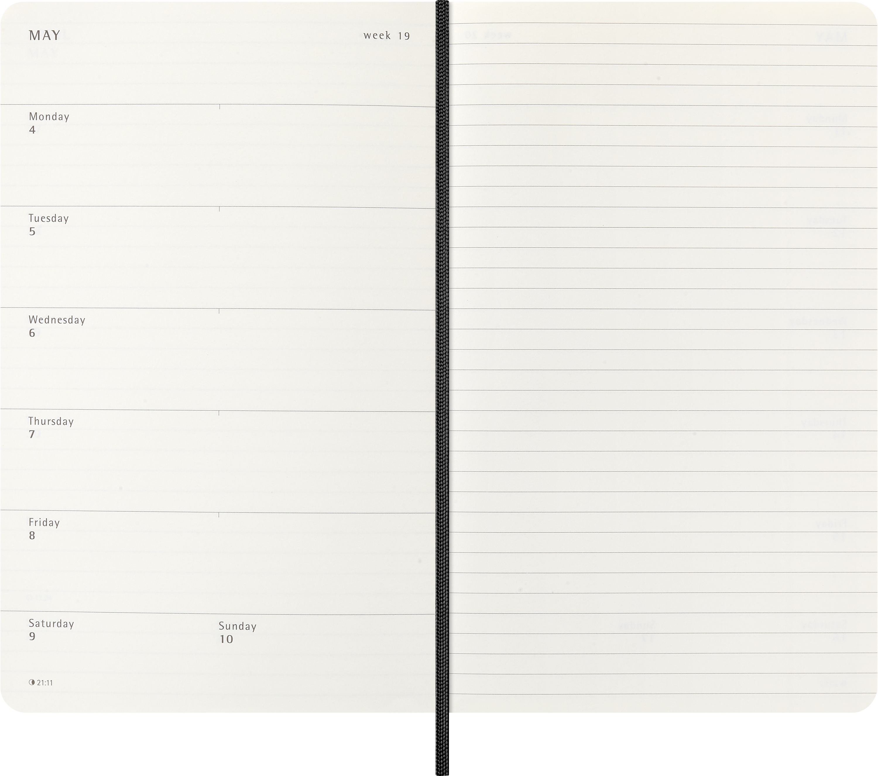 Moleskine 2026 uge pr side + notes kalender i Large (A5+) størrelse med softcover i Sort. Kalenderen dækker 12 måneder Januar til December, og giver dig et struktureret overblik over hele året. Designet med Moleskines klassiske detaljer som elastiklukning, runde hjørner, matchende bogmærkebånd, inderlomme til løse notater, stickers samt 70g elfenbensfarvet syrefrit papir, årsoversigt, månedsoversigt, hvilket gør den både praktisk og stilfuld. Perfekt til dig, der ønsker at holde styr på aftaler, deadlines og daglige noter med et professionelt og tidløst udtryk. En ideel kalender til både arbejde, studie og privat brug.