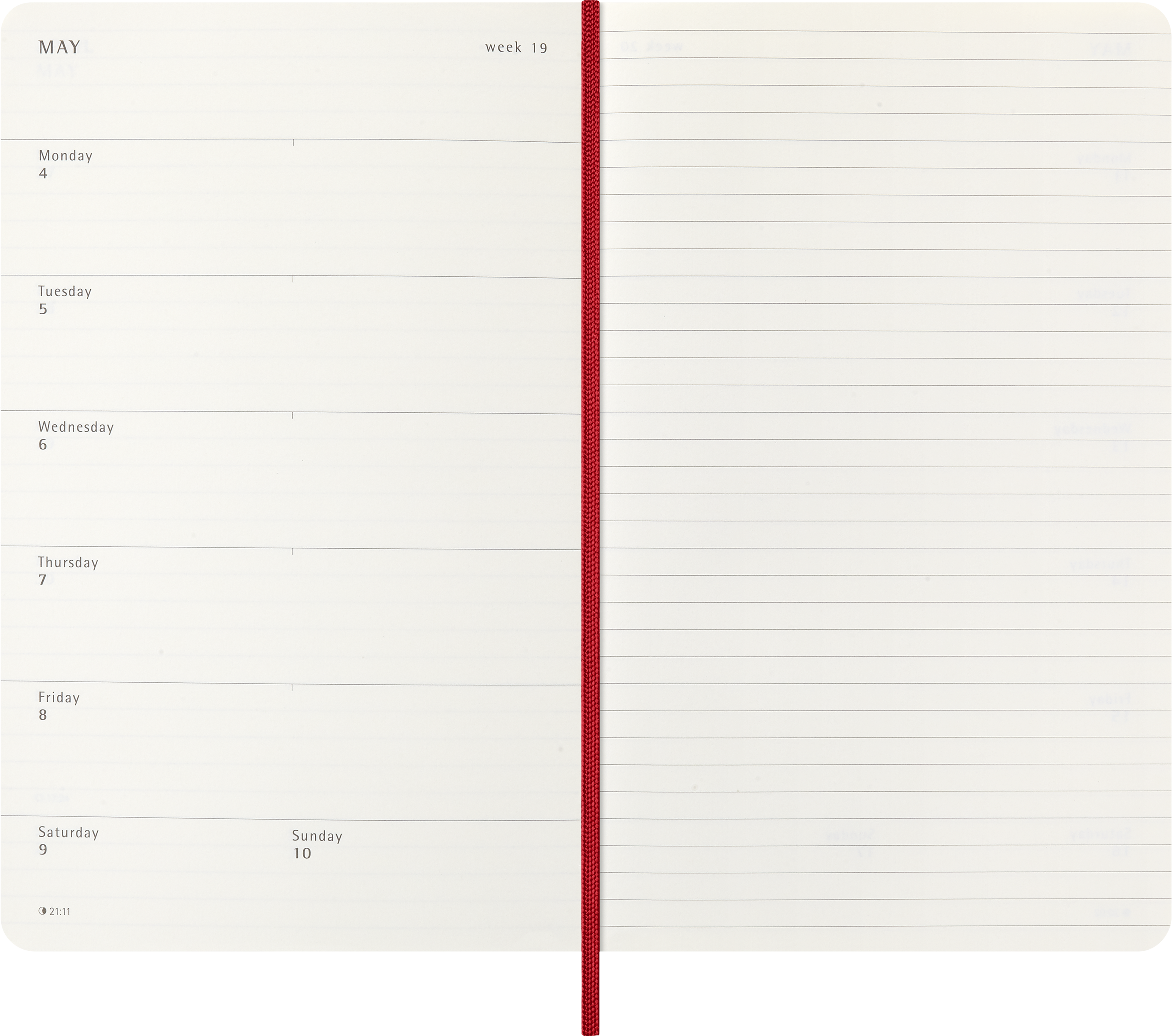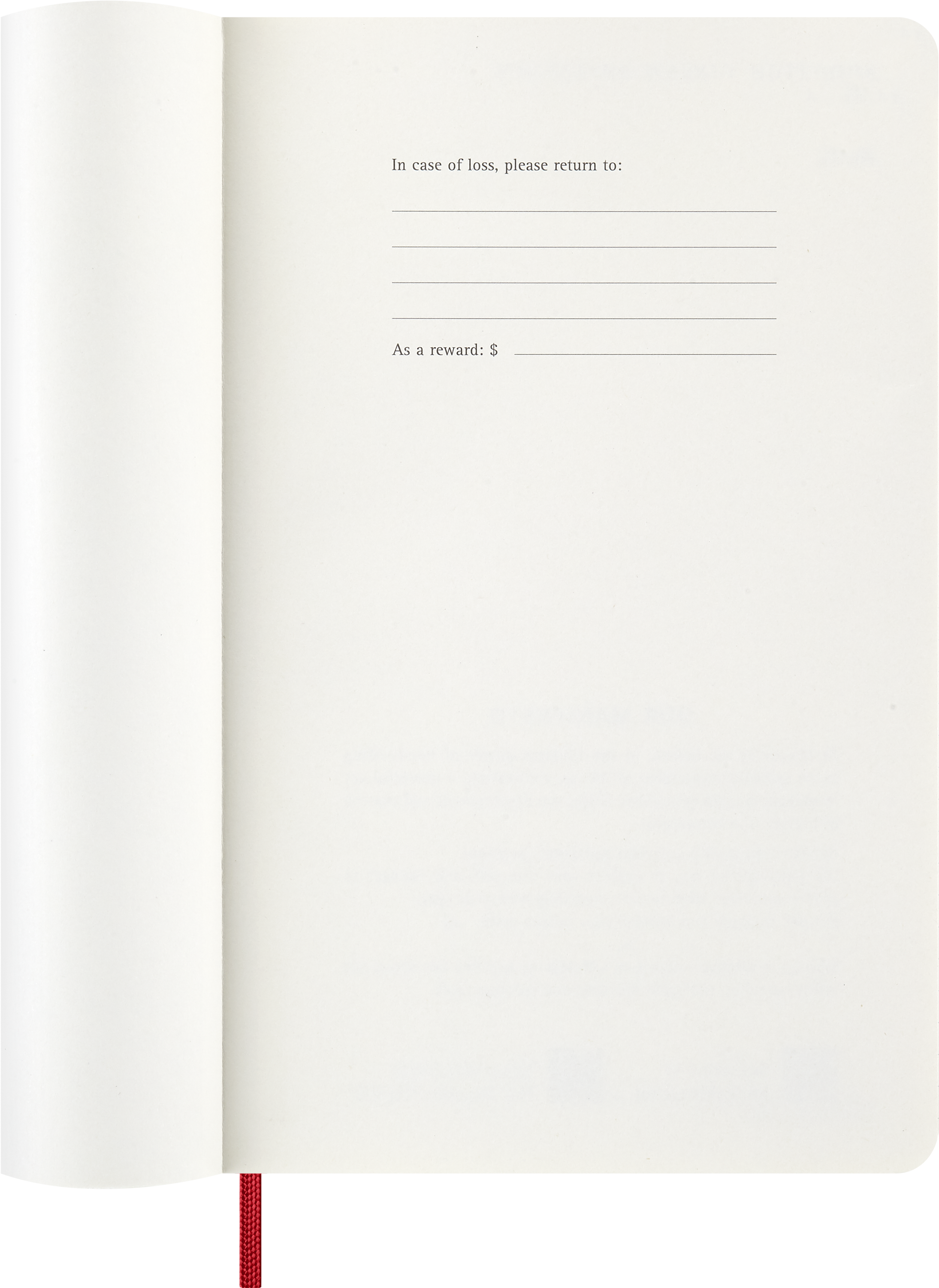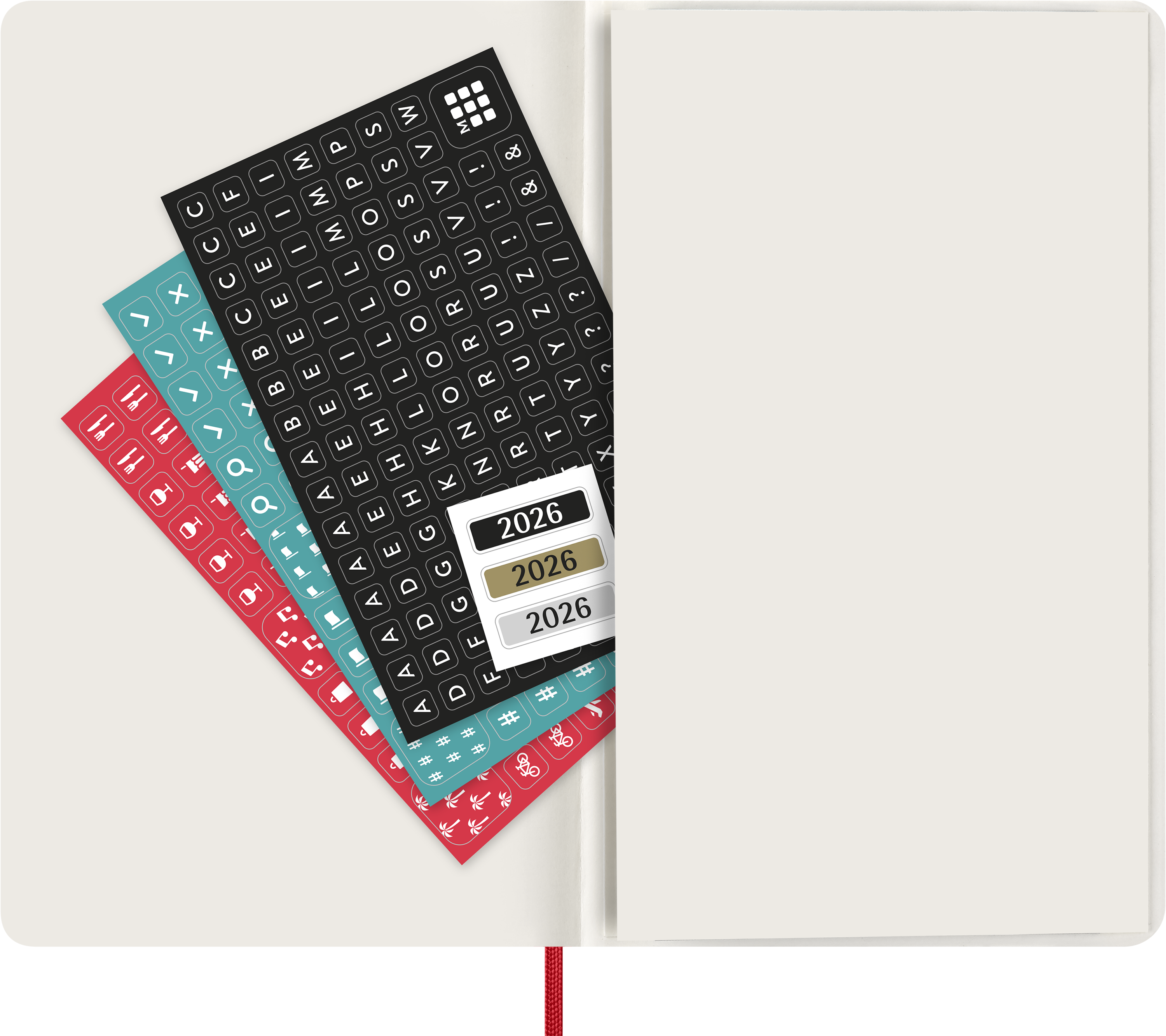Moleskine 2026 uge pr side + notes kalender i Large (A5+) størrelse med softcover i Rød. Kalenderen dækker 12 måneder Januar til December, og giver dig et struktureret overblik over hele året. Designet med Moleskines klassiske detaljer som elastiklukning,  runde hjørner, matchende bogmærkebånd, inderlomme til løse notater, stickers samt 70g elfenbensfarvet syrefrit papir, årsoversigt, månedsoversigt, hvilket gør den både praktisk og stilfuld. Perfekt til dig, der ønsker at holde styr på aftaler, deadlines og daglige noter med et professionelt og tidløst udtryk. En ideel kalender til både arbejde, studie og privat brug.