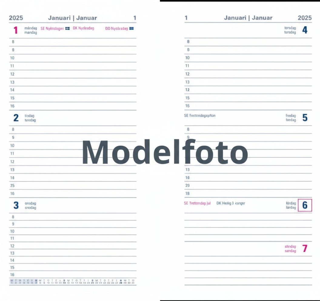 Med Letts 2026 Executive Slim Kalender Ugeopslag Rød får du en kalender, der forener enkel æstetik med gennemtænkt funktionalitet. Det Lomme-format-format er let at have med – men giver stadig luft på siderne til møder, noter og hurtige to-dos. Ugeopslagene er opbygget som vandrette kolonner med klare tidsangivelser, så dine aftaler falder naturligt på plads fra morgen til aften. Det bløde hardcover med silkeblød overflade ligger godt i hånden og tåler daglig brug. Siderne er trykt på 70 g/m² hvidt papir fra ansvarlige kilder; pennen flyder let, og indholdet forbliver skarpt uden gennemtryk. Syet indbinding, bogmærkesnor og rene typografiske linjer gør kalenderen til et trofast arbejdsredskab år efter år. Derudover får du Smart tynd lommekalender perfekt til inderlommen, hvidt papir, holdbart omslag. Kalenderen dækker 12 måneder januar til december, så du kan planlægge hele 2026 fra første dag. Farven rød giver et klassisk, roligt look, der passer ind i enhver professionel kontekst. Resultatet er en kalender, der inviterer til struktur – og som holder stilen hele vejen. Uanset om den bor på skrivebordet, i tasken eller i inderlommen, skaber den en rolig ramme om både arbejdsdage, studieliv og privat planer. Noter møder, træning, ferier og mål – og vend tilbage til et layout, der gør det let at prioritere. Detaljer som helligdagsmarkeringer, plads til noter og en frem- og tilbageplanlægger gør hverdagen mere overskuelig. Papiret arbejder godt med kuglepen, blyant og fineliner, og siderne bladrer let uden at krølle.