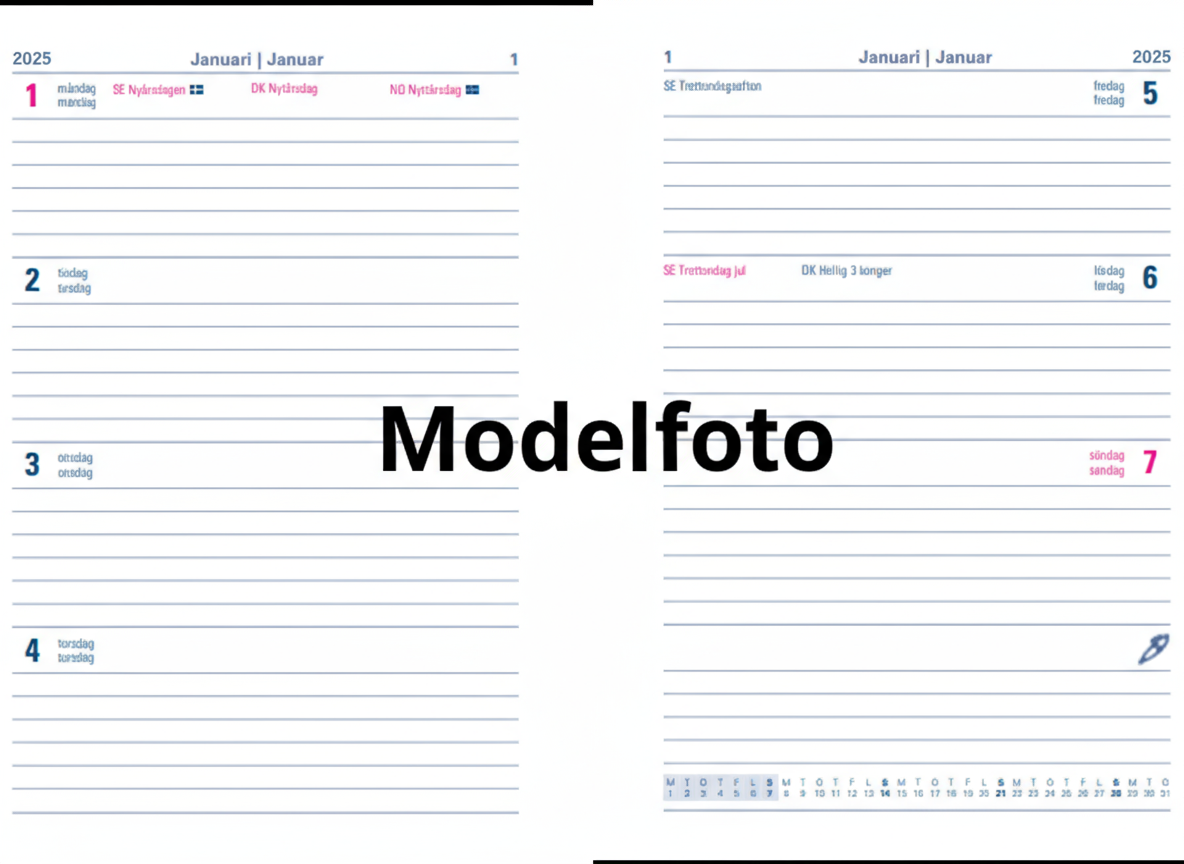 Letts 2026 Woodland Kalender A5 Ugeopslag Grøn er skabt til dig, der vil have en kalender med nordisk ro og professionelt overblik året rundt. A5-formatet rammer den perfekte balance mellem skriveplads på kontoret og mobilitet på farten. Ugeopslaget giver et samlet overblik, hvor hverdage og weekend står side om side – perfekt til både arbejdstid og privatliv. Det bløde hardcover med silkeblød overflade ligger godt i hånden og tåler daglig brug. Siderne er trykt på 70 g/m² hvidt papir fra ansvarlige kilder; pennen flyder let, og indholdet forbliver skarpt uden gennemtryk. Syet indbinding, bogmærkesnor og rene typografiske linjer gør kalenderen til et trofast arbejdsredskab år efter år. Derudover får du Harcover indebundet med en rustik følelse, moderne farve, bogmærke. Kalenderen dækker 12 måneder januar til december, så du kan planlægge hele 2026 fra første dag. Farven grøn giver et klassisk, roligt look, der passer ind i enhver professionel kontekst. Kort sagt: diskret luksus, gennemtænkte detaljer og et overblik, du kan regne med. Uanset om den bor på skrivebordet, i tasken eller i inderlommen, skaber den en rolig ramme om både arbejdsdage, studieliv og privat planer. Noter møder, træning, ferier og mål – og vend tilbage til et layout, der gør det let at prioritere. Detaljer som helligdagsmarkeringer, plads til noter og en frem- og tilbageplanlægger gør hverdagen mere overskuelig. Papiret arbejder godt med kuglepen, blyant og fineliner, og siderne bladrer let uden at krølle.